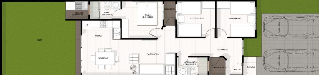 UN NIVEL Impresionante fachada con detalles que simulan madera. Cochera para dos vehículos revestida con tecnología bicapa en adoquín. Porche. Espaciosa sala principal. Moderno comedor independiente con espectacular vista al jardín. Amplia cocina. Master Bedroom con elegante baño incluido. Espaciosa habitación junior. Lujoso baño compartido con lavamanos en superficie de granito. Armoniosa Terraza Espacioso Jardín Interior.
